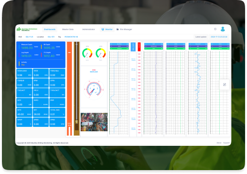 Sistem ini menampilkan data pengeboran secara waktu nyata dalam format digital dan grafik interaktif. Terintegrasi dengan CCTV dan pemberitahuan awal, dasbor ini mendukung pengambilan keputusan yang cepat dan efisiensi operasional. Keuntungan Utama: Pemantauan waktu nyata WOB, RPM, SPP, Torsi, Kedalaman Pemberitahuan awal untuk pipa terjebak & tekanan berlebih Akses multi-level dari rig ke kantor pusat
