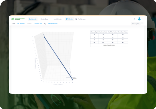 Fitur ini menampilkan visualisasi interaktif 3D dari trajektori sumur, membantu memahami arah spasial pengeboran—apakah vertikal, menyimpang, atau horizontal. Data diperbarui secara waktu nyata dan mendukung analisis teknis untuk perencanaan lapangan hingga evaluasi stabilitas. Keuntungan Utama: Visualisasi trajektori sumur berdasarkan MD, INC, AZI dalam koordinat 3D Tampilan multi-sumur untuk perbandingan dan evaluasi tabrakan Integrasi dengan data formasi & potongan untuk analisis geologi yang lebih mendalam